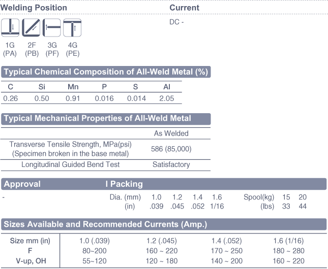 - EN : ISO 17632-A-T 42 Z Z V N 1